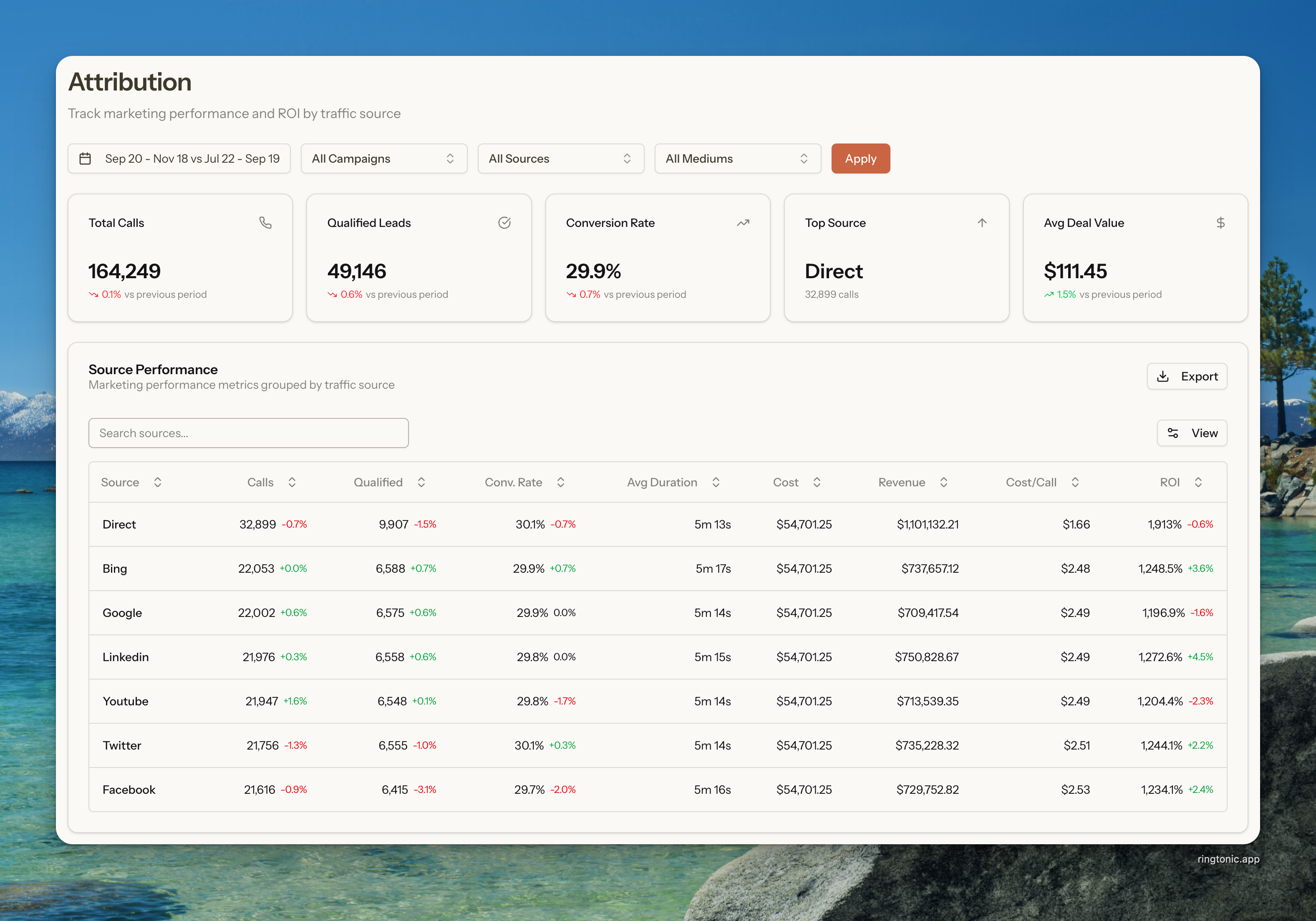 Attribution shows you which marketing sources drive the most valuable calls and highest ROI. This report is essential for understanding where to invest your marketing budget.