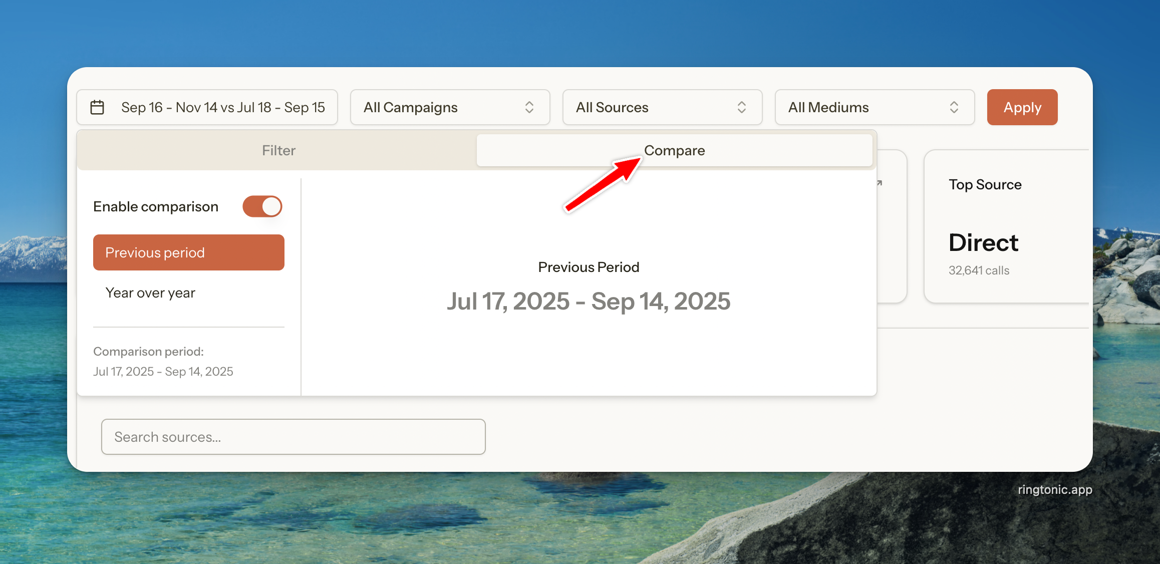 * **Previous Period:** Compare your selected date range to the immediately preceding period of equal length