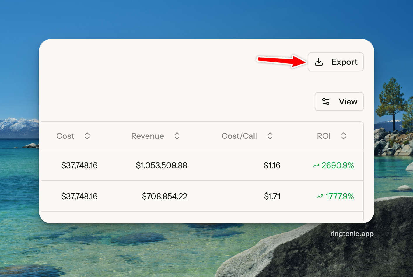 Exports respect your current filters and date range. All visible columns are included in the export. If you're filtering by a single campaign, the campaign name will be included in the filename automatically.
